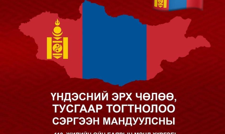 1911 оны цагаагчин гахай жилийн өвлийн дунд сарын шинийн есөн буюу аргын тооллын 1911 оны 12 сарын 29-нд Монгол Улсын түүхэнд 200 гаруй жил үргэлжилсэн Манж Чин гүрний ноёрхлыг эцэс болгон Монголчууд үндэсний тусгаар тогтнолоо зарлаж, VIII Богдыг Монгол улсын шашин төрийг хослон баригч, хэмжээгүй эрхт хаанд өргөмжилж түүнд төрийн тамга, төрийн далбаа, өргөмжлөл, хүндэтгэлийг өргөж, таван яам бүхий засгийн газрыг байгуулах түүхэн шийдвэр гарган, тусгаар тогтносон Богд хаант Монгол улсыг байгуулсан юм. Монголчуудын сэргэн мандлын эхийг тавьсан 1911 оны Үндэсний эрх чөлөөний хувьсгал нь төрт ёсны өнө эртний уламжлалтай Монголын ард түмний түүхийн онцгой хуудас, хойч үе нь бахархан дурсвал зохих түүхт үйл явдал мөн. Энэхүү Үндэсний эрх чөлөөний хувьсгал нь Монголчуудын туурга тусгаар улсаа сэргээн байгуулах гэсэн олон арван жилийн мохошгүй хүсэл тэмүүлэл, тууштай тэмцлийн биелэл, үндэсний ухамсрын их сэргэлтийн эхлэл, 1921 оны Ардын хувьсгалын бодит хөрс болсон билээ.